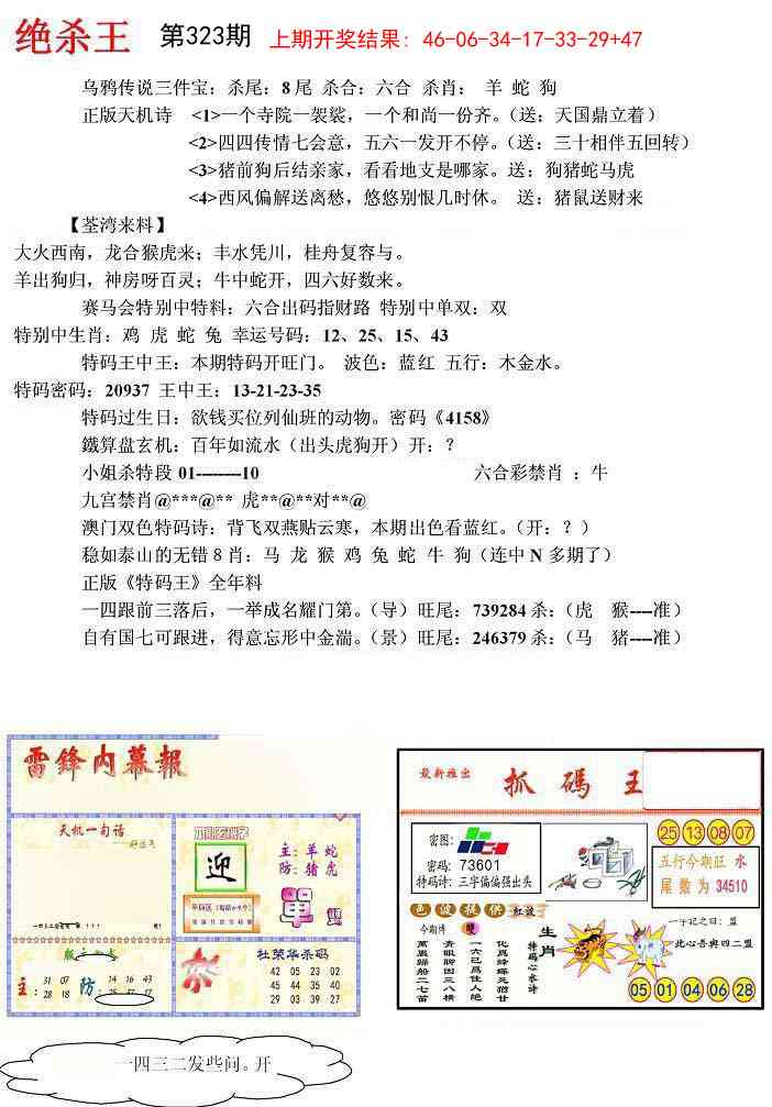 公告:本站所有出售铜币的资料都是由高手各自发表心水,并达到一定的准度后才会收取铜币。请彩民朋友们仔细看清楚需要购买的心水资料,对错不怪,本站没有100%包中资料,只有100%保证不改料,不二次收费!自愿消费,收取铜币也是为了更好激励高手研究资料,敬请谅解!祝各位彩友:横财就手,期期大中!